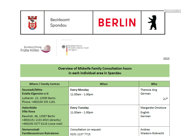 regarding upbringing, healthy growing up, exercise and leisure activities.Visit our Website of the family centres in Spandau, most of them also do speak English.